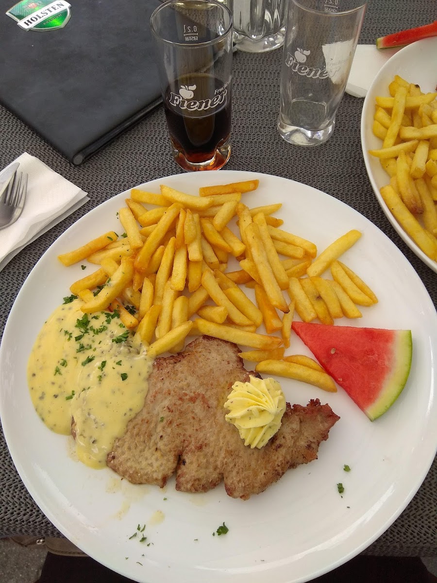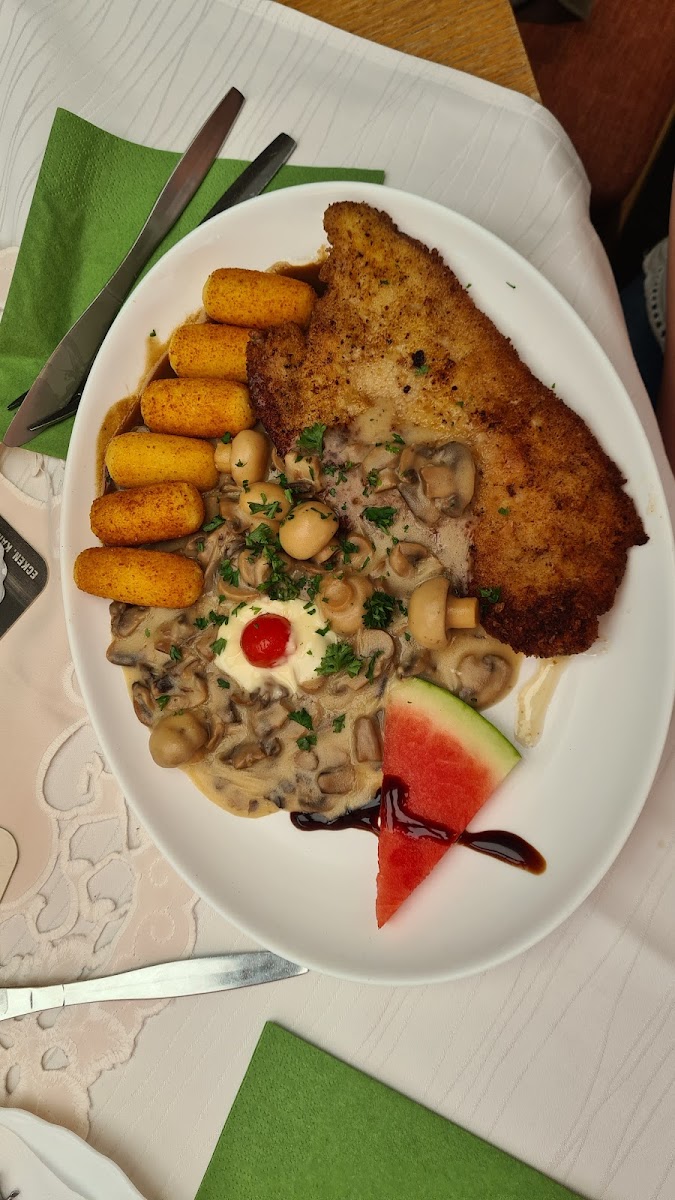 One of the restaurant's unique offerings is the Schnitzel Mit Gitterkartoffeln (schnitzel with lattice potatoes), a fun and flavorful twist on the classic schnitzel dish. The lattice potatoes are crispy and delicious, adding a crunchy contrast to the tender schnitzel.