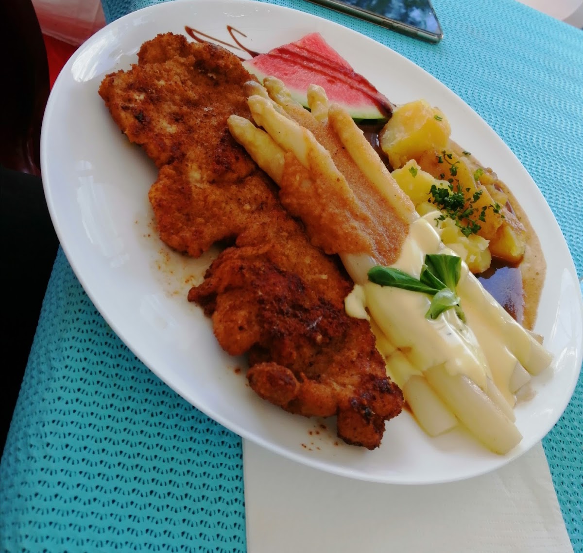 The restaurant’s menu features a variety of traditional German dishes, each prepared with care and attention to detail. A standout option is the Schnitzel Mit Rahmchampions, a succulent breaded pork schnitzel served with creamy mushrooms that add a rich, flavorful touch. If you're in the mood for something light and fresh, the Schnitzel Mit Spargel (schnitzel with asparagus) is a perfect choice, combining the crispy texture of schnitzel with the seasonal delicacy of asparagus.