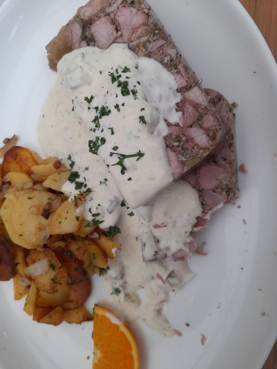 For those craving a heartier dish, the Pfeffersteak Mit Pommes Frites (pepper steak with fries) is a classic that never disappoints. The perfectly cooked steak, seasoned with bold peppercorns, is complemented by crispy golden fries, creating a balanced and satisfying meal. If you're in the mood for something a bit more rustic, the Bratkartoffeln Mit Sülze (fried potatoes with head cheese) offers a traditional taste of Germany, with flavorful fried potatoes and a savory slice of sülze.